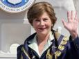 2007 року Лора Буш відвідала Саудівську Аравію. Поїздка відбулася в межах її близькосхідного туру, спрямованого на підвищення обізнаності про рак грудей. Того дня перша леді наділа синю шовкову хустку від Hermès із золотим принтом. Цей аксесуар мав дуж...